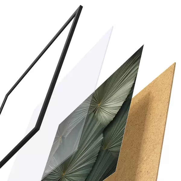 Plakatą sudaro rėmas, pleksiklas, atspausdintas vaizdas ir medžio drožlių plokštės pagrindas. Plakatą galima iš karto pakabinti ant sienos dėl kitoje pusėje esančių laikiklių.