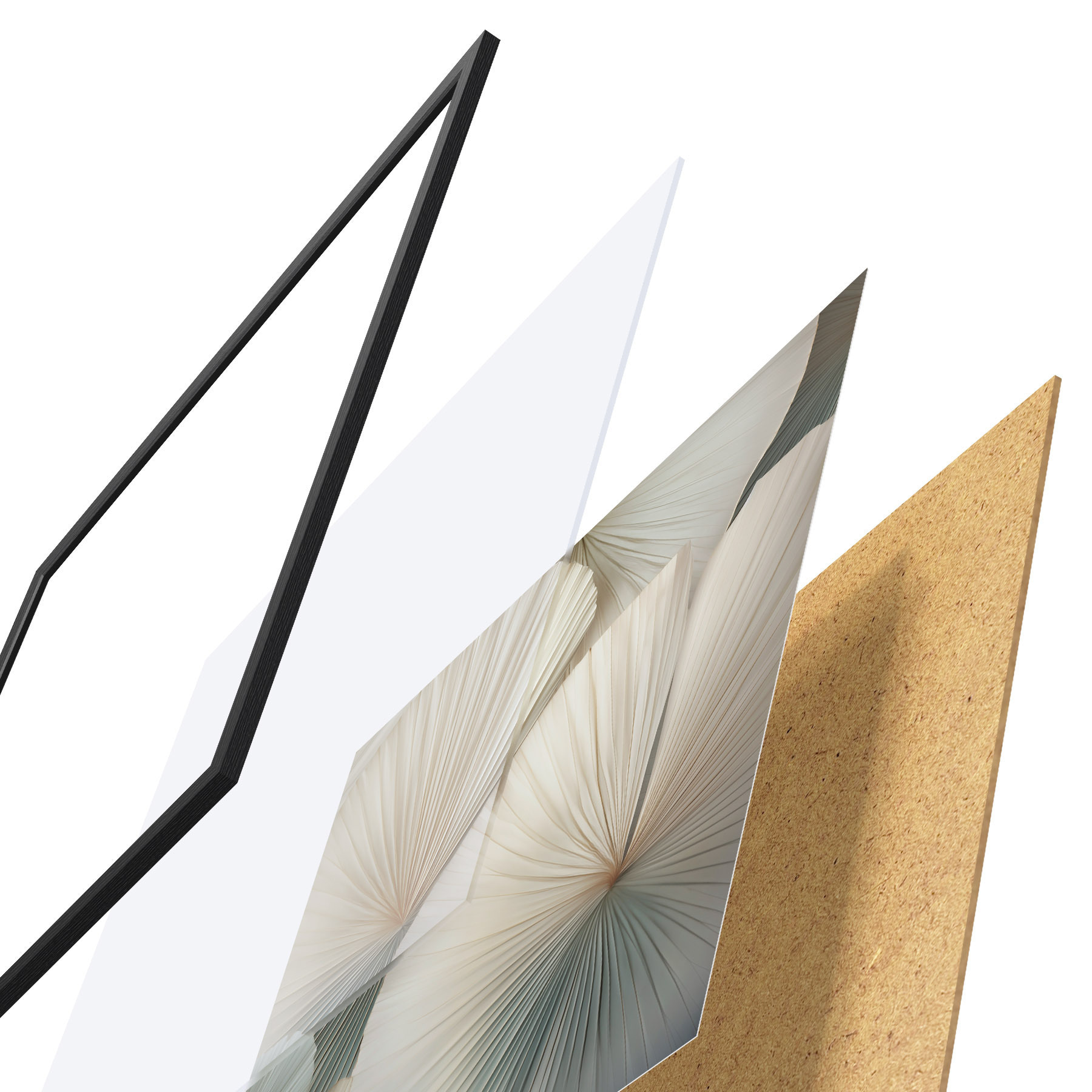 Plakatą sudaro rėmas, pleksiklas, atspausdintas vaizdas ir medžio drožlių plokštės pagrindas. Plakatą galima iš karto pakabinti ant sienos dėl kitoje pusėje esančių laikiklių.