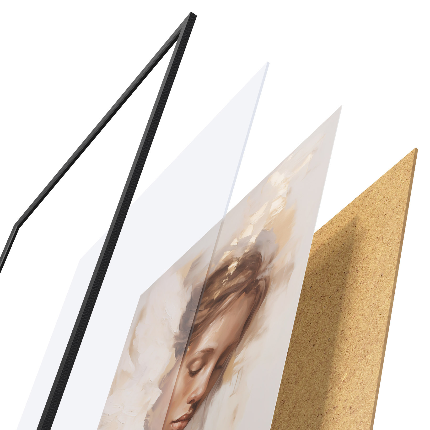 Plakatą sudaro rėmas, pleksiklas, atspausdintas vaizdas ir medžio drožlių plokštės pagrindas. Plakatą galima iš karto pakabinti ant sienos dėl kitoje pusėje esančių laikiklių.