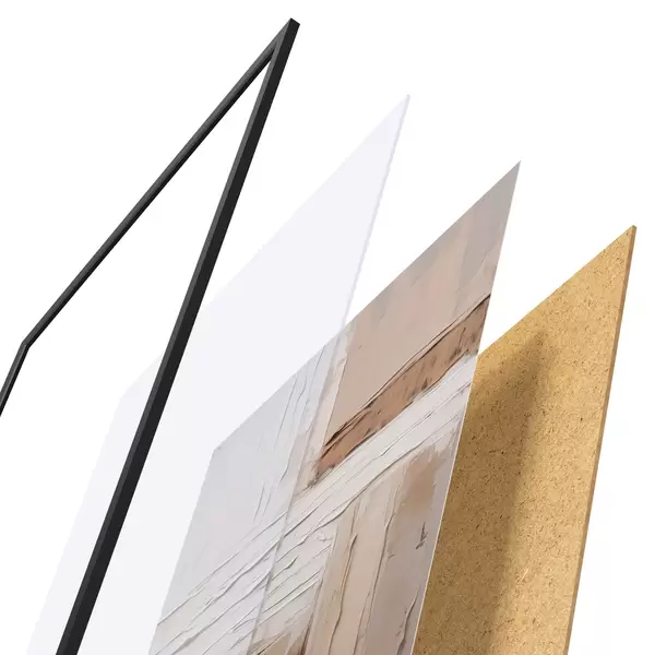 Plakatą sudaro rėmas, pleksiklas, atspausdintas vaizdas ir medžio drožlių plokštės pagrindas. Plakatą galima iš karto pakabinti ant sienos dėl kitoje pusėje esančių laikiklių.