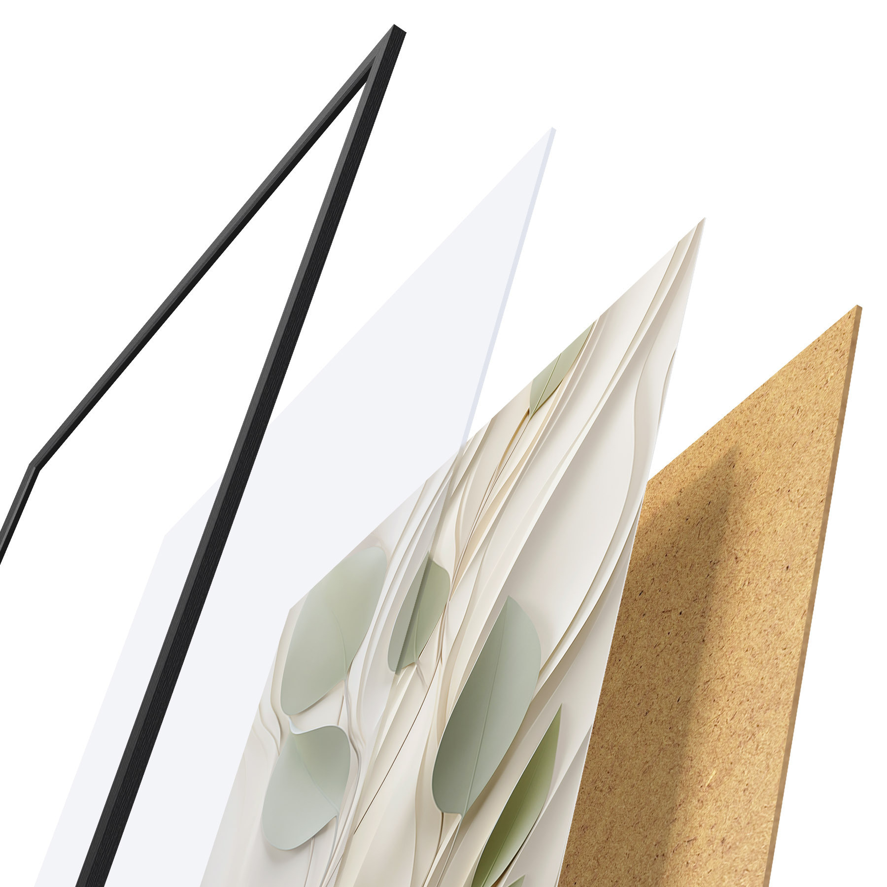 Plakatą sudaro rėmas, pleksiklas, atspausdintas vaizdas ir medžio drožlių plokštės pagrindas. Plakatą galima iš karto pakabinti ant sienos dėl kitoje pusėje esančių laikiklių.