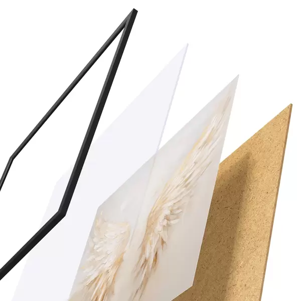 Plakatą sudaro rėmas, pleksiklas, atspausdintas vaizdas ir medžio drožlių plokštės pagrindas. Plakatą galima iš karto pakabinti ant sienos dėl kitoje pusėje esančių laikiklių.