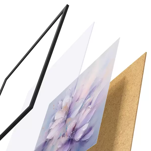 Plakatą sudaro rėmas, pleksiklas, atspausdintas vaizdas ir medžio drožlių plokštės pagrindas. Plakatą galima iš karto pakabinti ant sienos dėl kitoje pusėje esančių laikiklių.