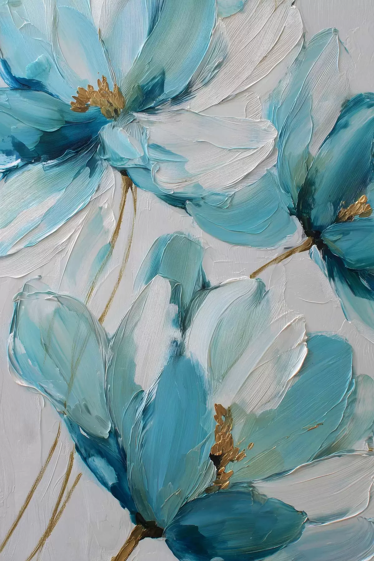 Plakatas mėlynos gėlės, nutapytos impasto technika f48991