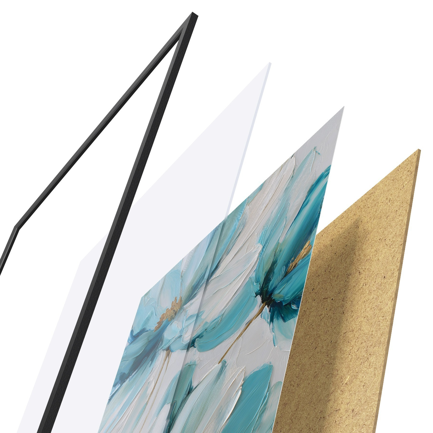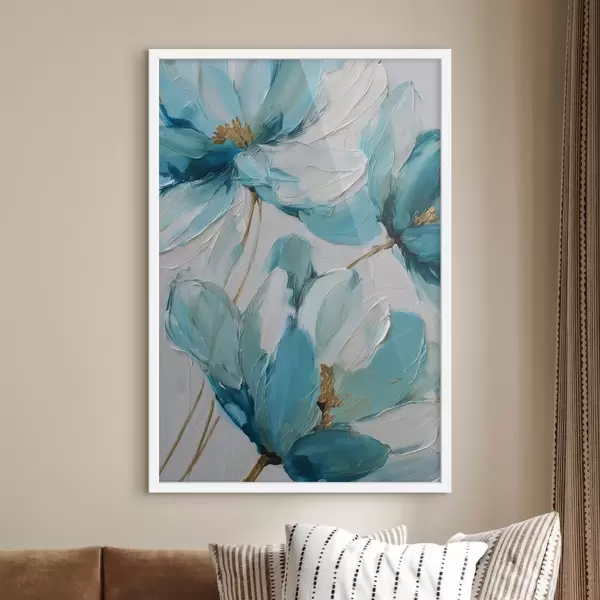 Plakatas mėlynos gėlės, nutapytos impasto technika Ne f48991