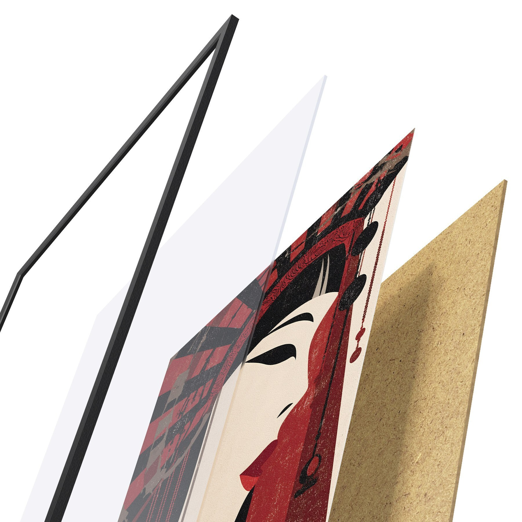 Plakatą sudaro rėmas, pleksiklas, atspausdintas vaizdas ir medžio drožlių plokštės pagrindas. Plakatą galima iš karto pakabinti ant sienos dėl kitoje pusėje esančių laikiklių.