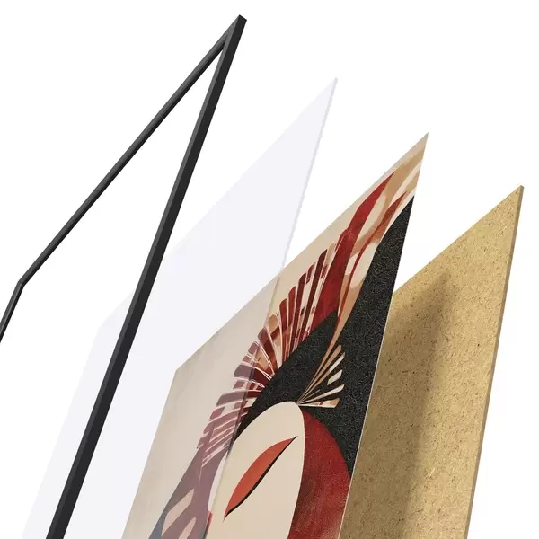 Plakatą sudaro rėmas, pleksiklas, atspausdintas vaizdas ir medžio drožlių plokštės pagrindas. Plakatą galima iš karto pakabinti ant sienos dėl kitoje pusėje esančių laikiklių.