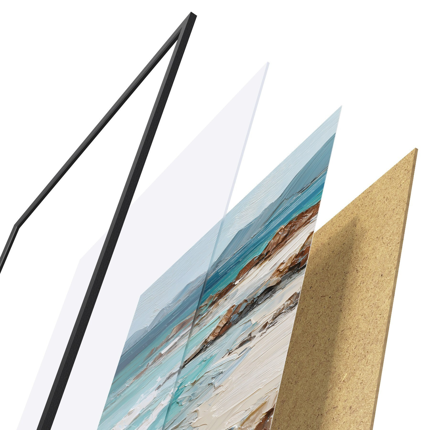 Plakatą sudaro rėmas, pleksiklas, atspausdintas vaizdas ir medžio drožlių plokštės pagrindas. Plakatą galima iš karto pakabinti ant sienos dėl kitoje pusėje esančių laikiklių.