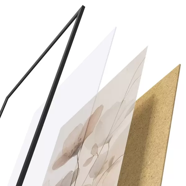Plakatą sudaro rėmas, pleksiklas, atspausdintas vaizdas ir medžio drožlių plokštės pagrindas. Plakatą galima iš karto pakabinti ant sienos dėl kitoje pusėje esančių laikiklių.