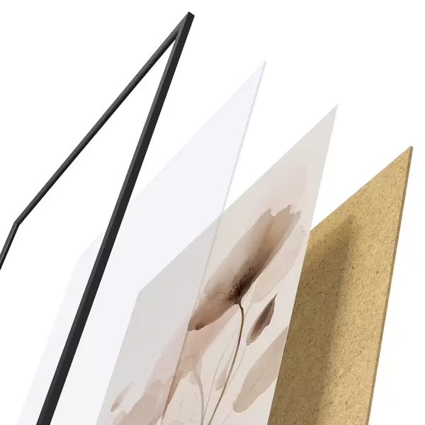 Plakatą sudaro rėmas, pleksiklas, atspausdintas vaizdas ir medžio drožlių plokštės pagrindas. Plakatą galima iš karto pakabinti ant sienos dėl kitoje pusėje esančių laikiklių.