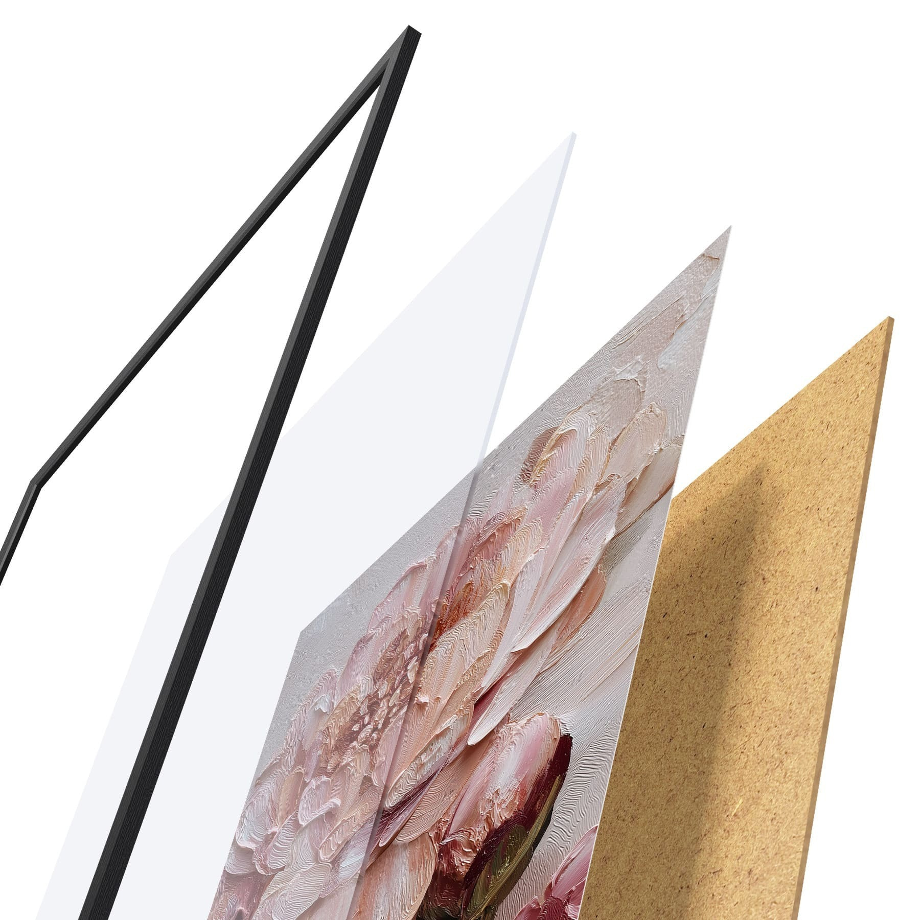Plakatą sudaro rėmas, pleksiklas, atspausdintas vaizdas ir medžio drožlių plokštės pagrindas. Plakatą galima iš karto pakabinti ant sienos dėl kitoje pusėje esančių laikiklių.