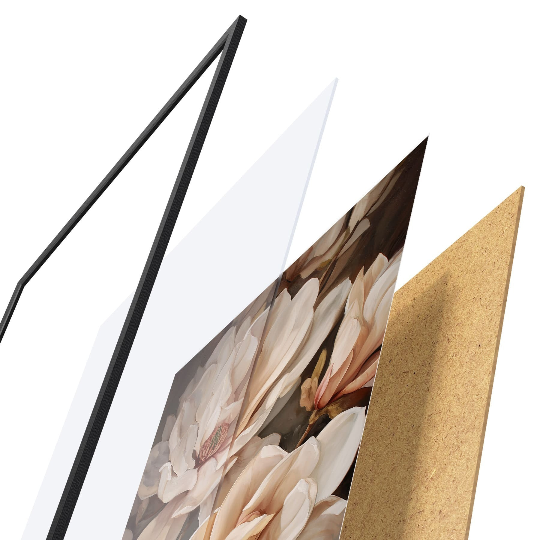 Plakatą sudaro rėmas, pleksiklas, atspausdintas vaizdas ir medžio drožlių plokštės pagrindas. Plakatą galima iš karto pakabinti ant sienos dėl kitoje pusėje esančių laikiklių.