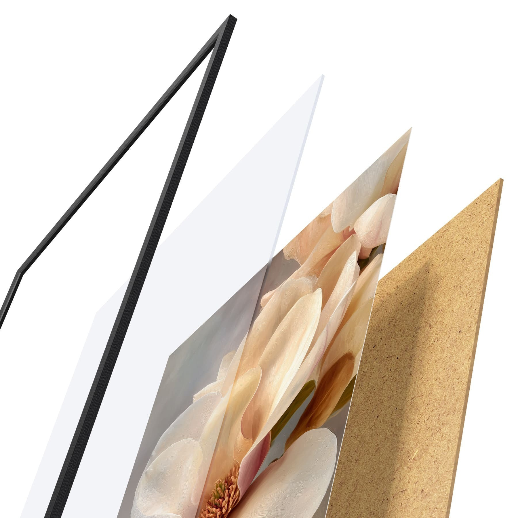 Plakatą sudaro rėmas, pleksiklas, atspausdintas vaizdas ir medžio drožlių plokštės pagrindas. Plakatą galima iš karto pakabinti ant sienos dėl kitoje pusėje esančių laikiklių.