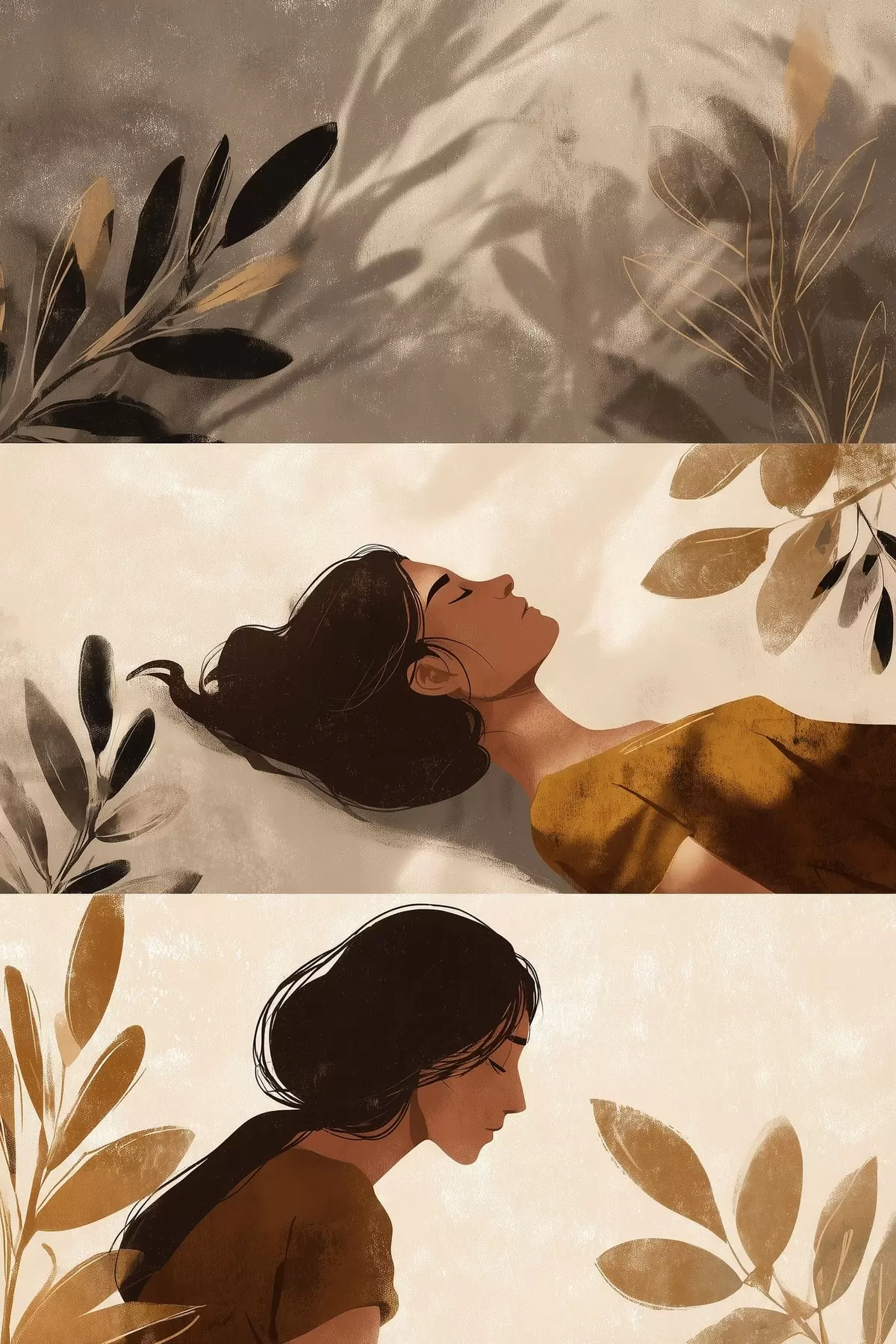 Plakatas Triptikas „Moteris su lapais“ f49018