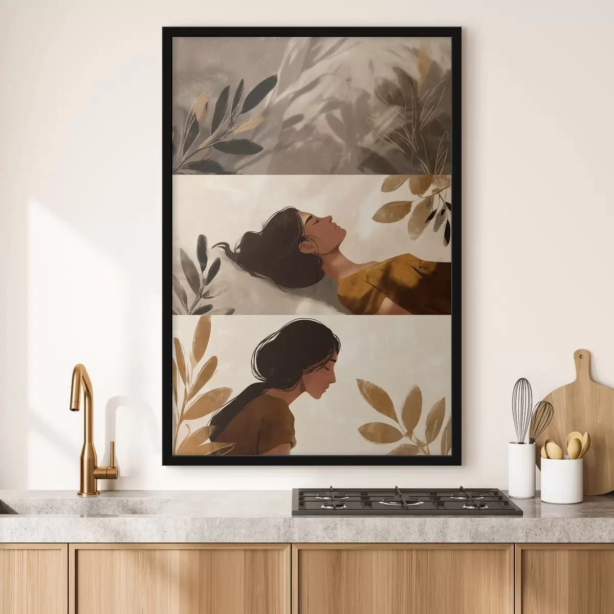 Plakatas Triptikas „Moteris su lapais“ Ne f49018