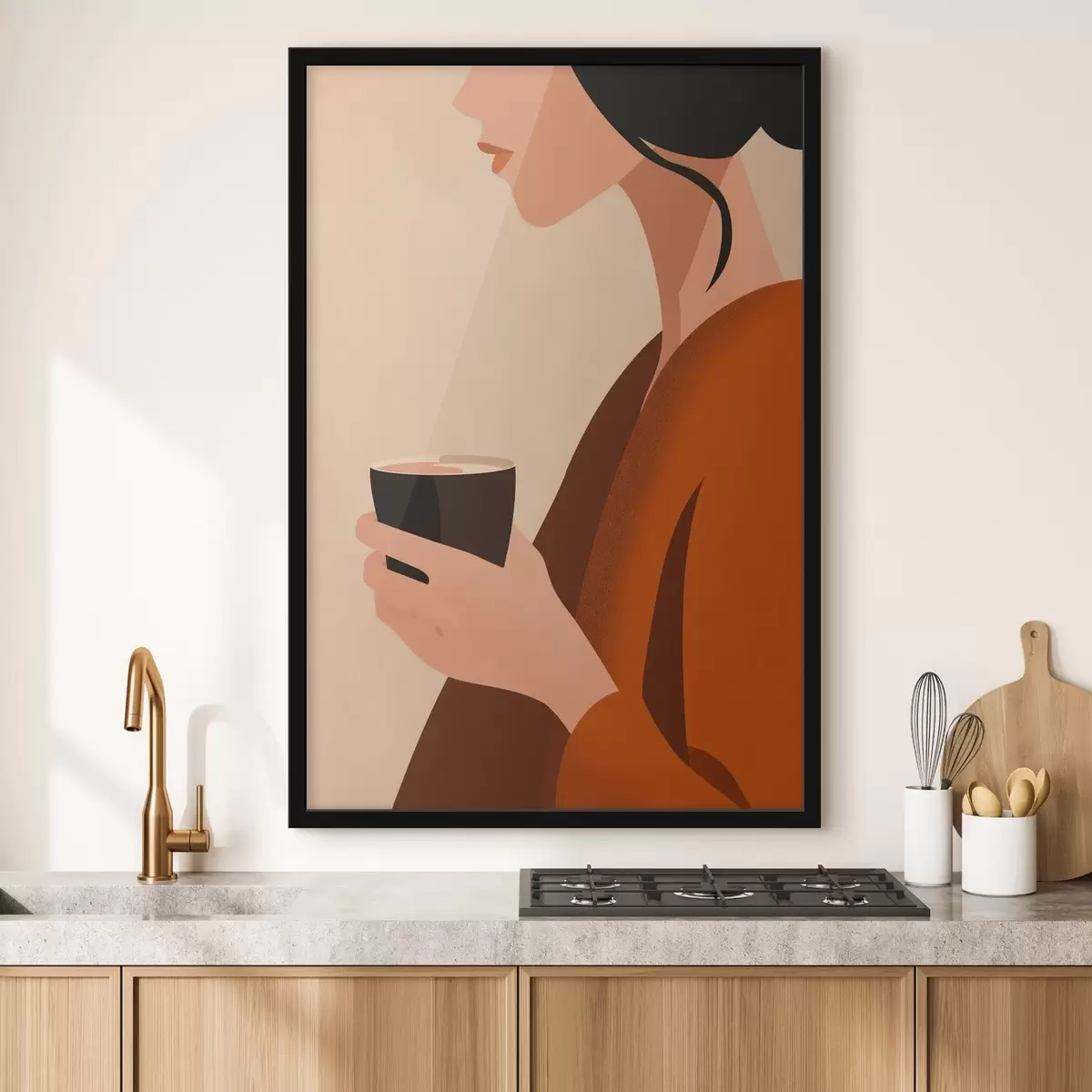 Plakatas Moteris su puodeliu (minimalistinis stilius) f49019