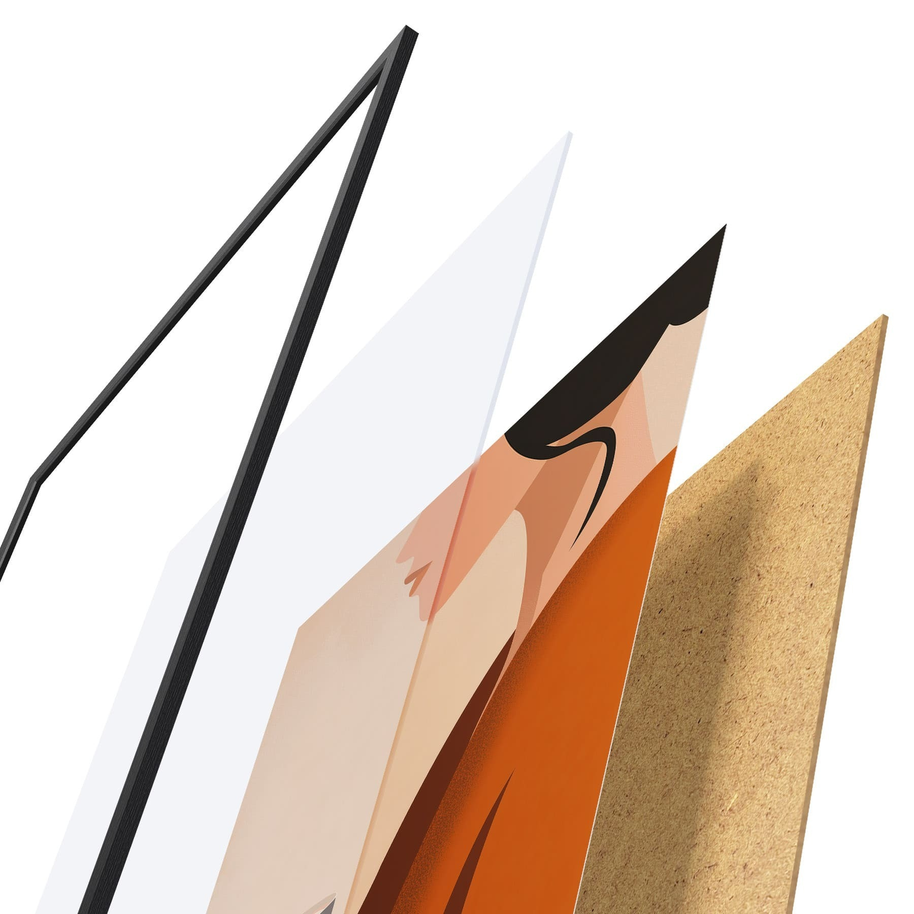 Plakatą sudaro rėmas, pleksiklas, atspausdintas vaizdas ir medžio drožlių plokštės pagrindas. Plakatą galima iš karto pakabinti ant sienos dėl kitoje pusėje esančių laikiklių.