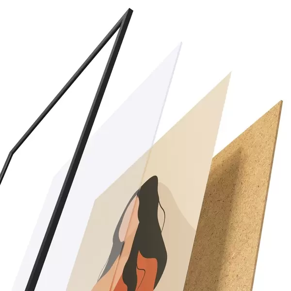 Plakatą sudaro rėmas, pleksiklas, atspausdintas vaizdas ir medžio drožlių plokštės pagrindas. Plakatą galima iš karto pakabinti ant sienos dėl kitoje pusėje esančių laikiklių.