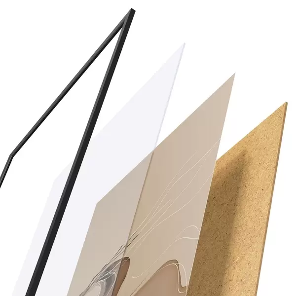 Plakatą sudaro rėmas, pleksiklas, atspausdintas vaizdas ir medžio drožlių plokštės pagrindas. Plakatą galima iš karto pakabinti ant sienos dėl kitoje pusėje esančių laikiklių.