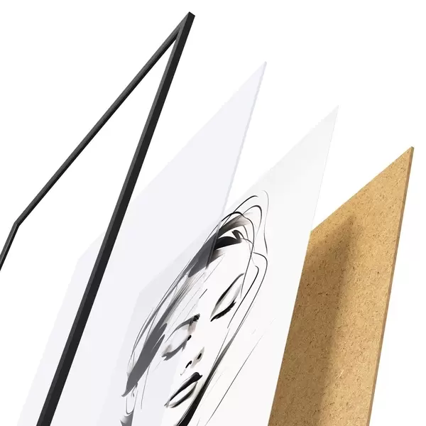Plakatą sudaro rėmas, pleksiklas, atspausdintas vaizdas ir medžio drožlių plokštės pagrindas. Plakatą galima iš karto pakabinti ant sienos dėl kitoje pusėje esančių laikiklių.