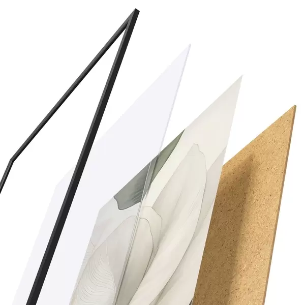 Plakatą sudaro rėmas, pleksiklas, atspausdintas vaizdas ir medžio drožlių plokštės pagrindas. Plakatą galima iš karto pakabinti ant sienos dėl kitoje pusėje esančių laikiklių.