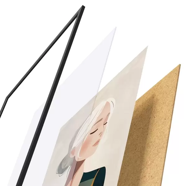 Plakatą sudaro rėmas, pleksiklas, atspausdintas vaizdas ir medžio drožlių plokštės pagrindas. Plakatą galima iš karto pakabinti ant sienos dėl kitoje pusėje esančių laikiklių.