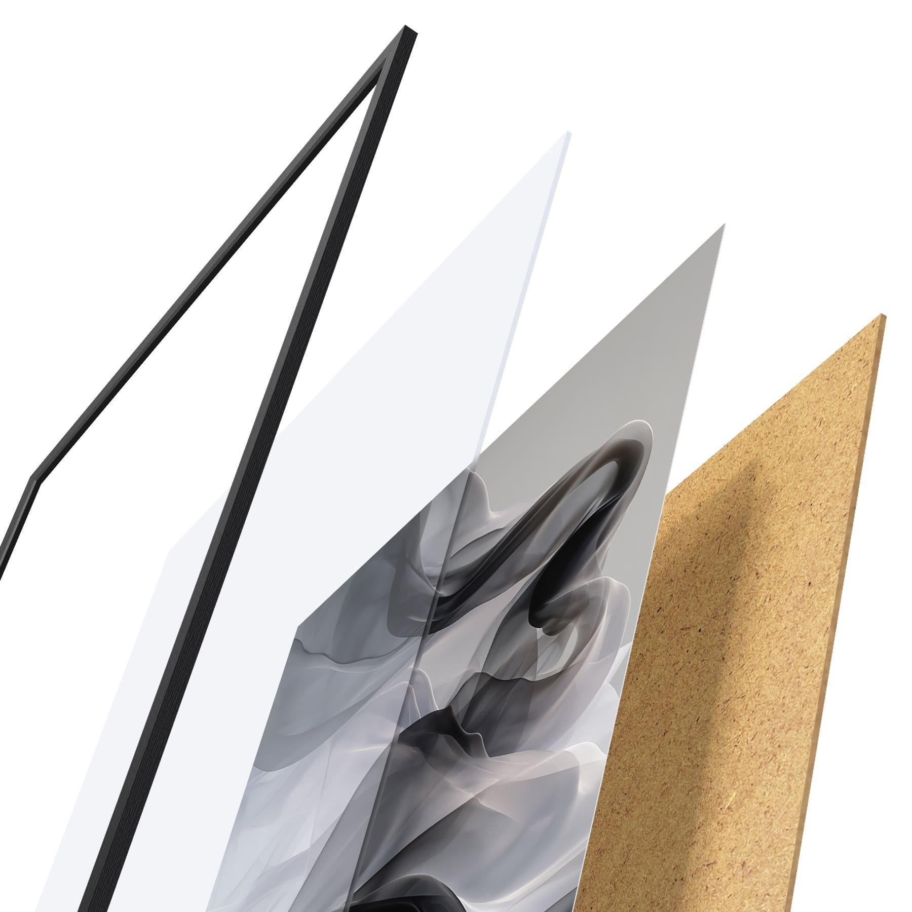 Plakatą sudaro rėmas, pleksiklas, atspausdintas vaizdas ir medžio drožlių plokštės pagrindas. Plakatą galima iš karto pakabinti ant sienos dėl kitoje pusėje esančių laikiklių.
