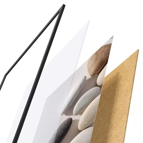 Plakatą sudaro rėmas, pleksiklas, atspausdintas vaizdas ir medžio drožlių plokštės pagrindas. Plakatą galima iš karto pakabinti ant sienos dėl kitoje pusėje esančių laikiklių.