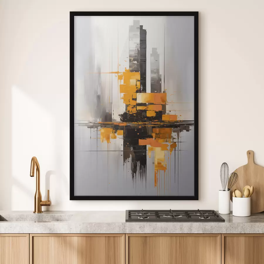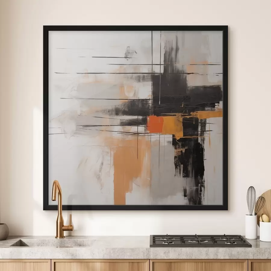 Abstrakti oranžinių ir pilkų tonų kompozicija su tekstūra