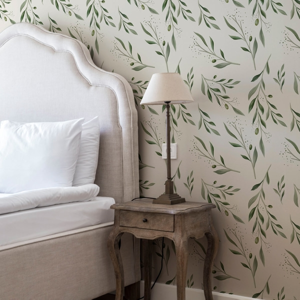 Mažas pakartojimas: trijų lapų grupės ant kreminės-smėlio spalvos fono