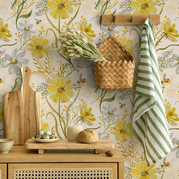 Stilizuotos gėlės šiltų atspalvių su širdelėmis