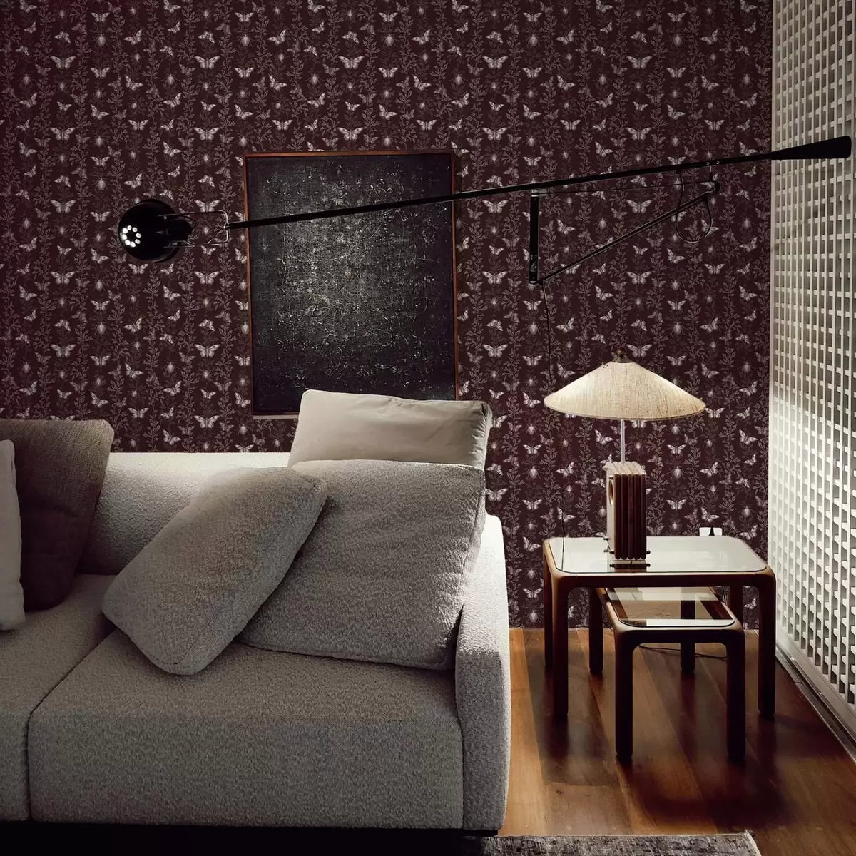 Tapetai Kompozicija su drugeliais, lapais ir vabzdžiais tamsiame fone Nr. a00073v1