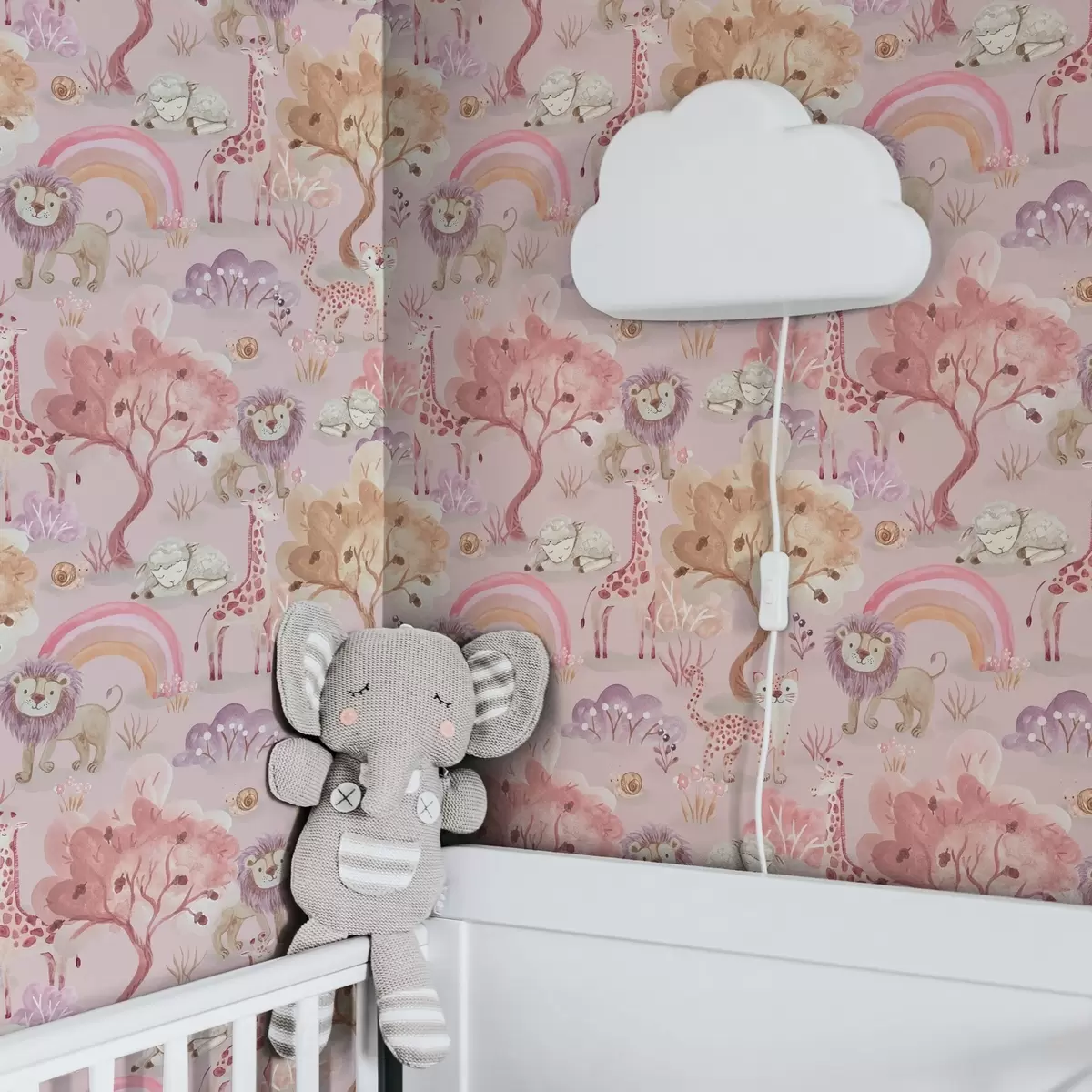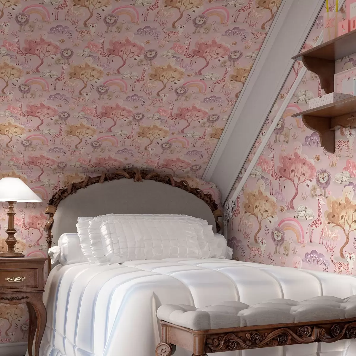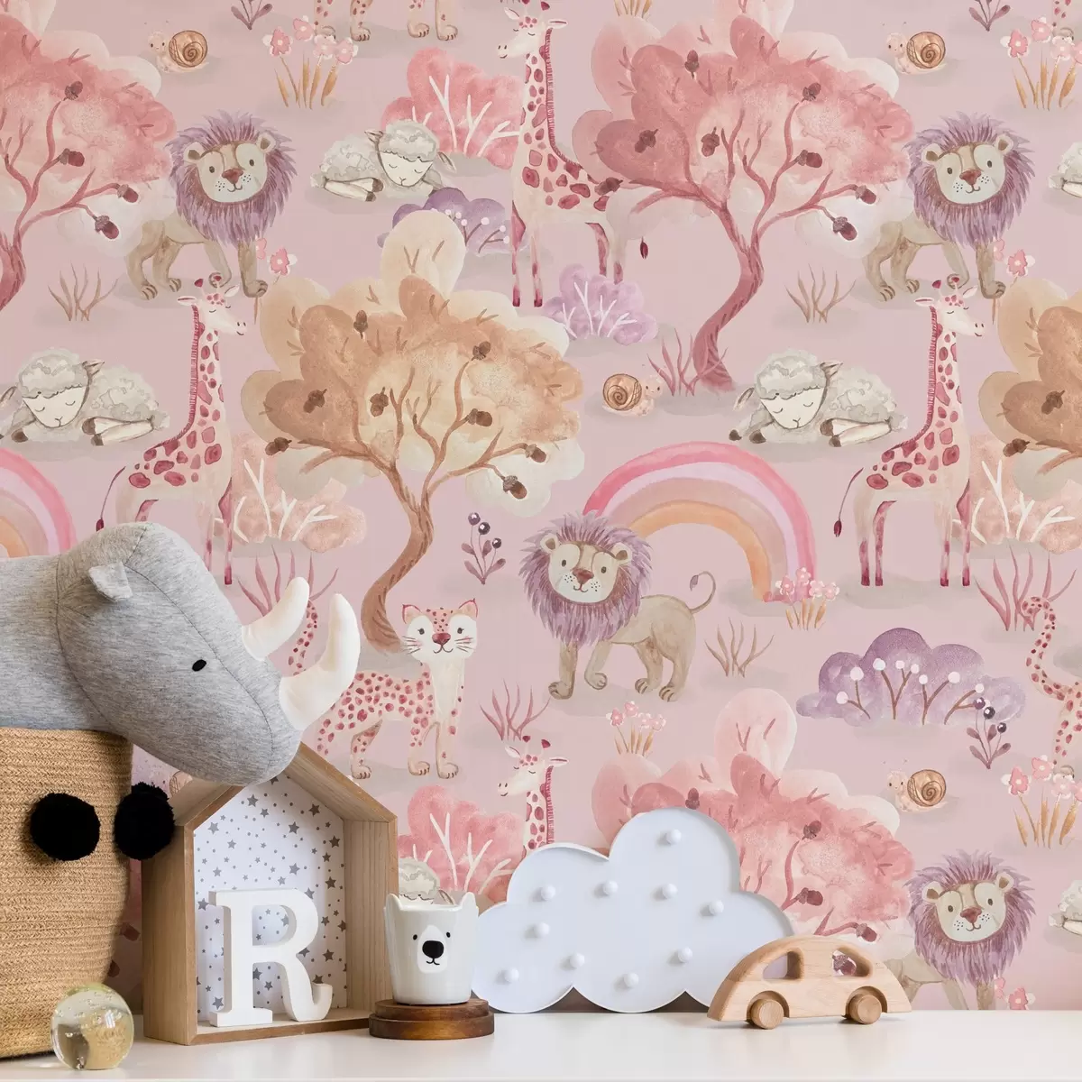 Tapetai Liūtai, žirafos ir vaivorykštės pasteliniame miške Nr. a00112