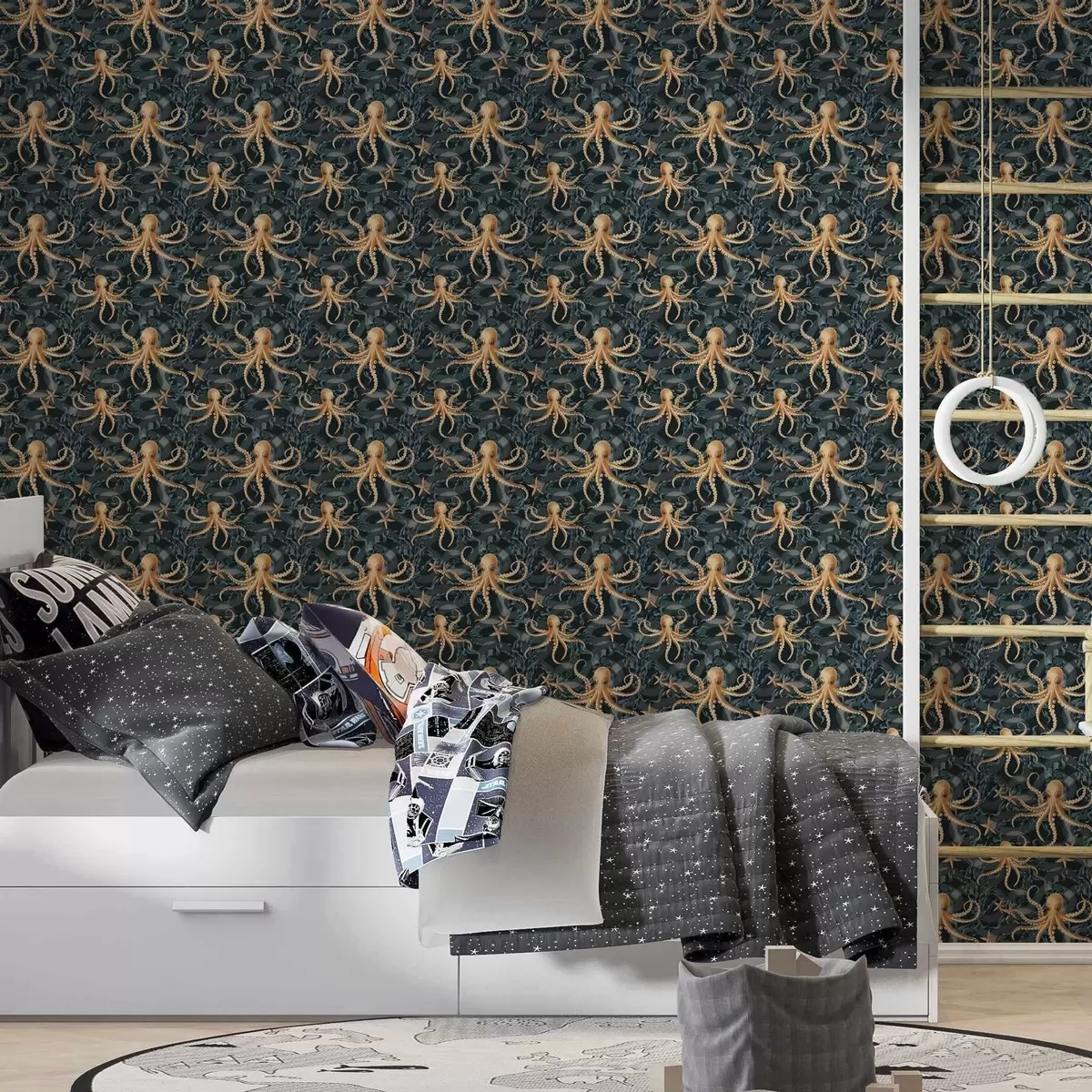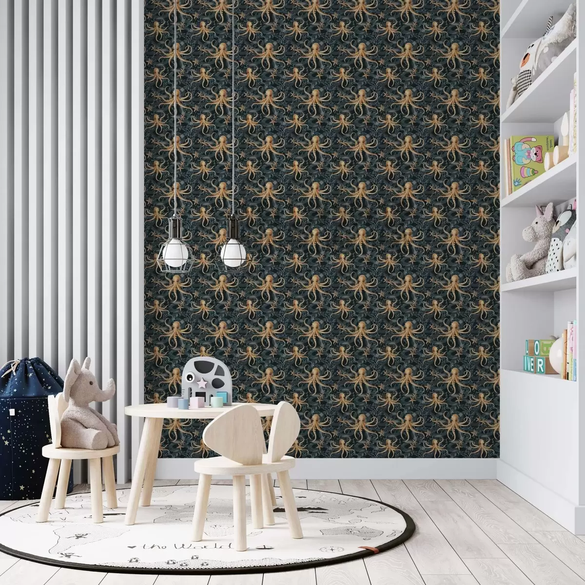 Tapetai Aštuonkojai tamsiai mėlyname fone Nr. a00120v1