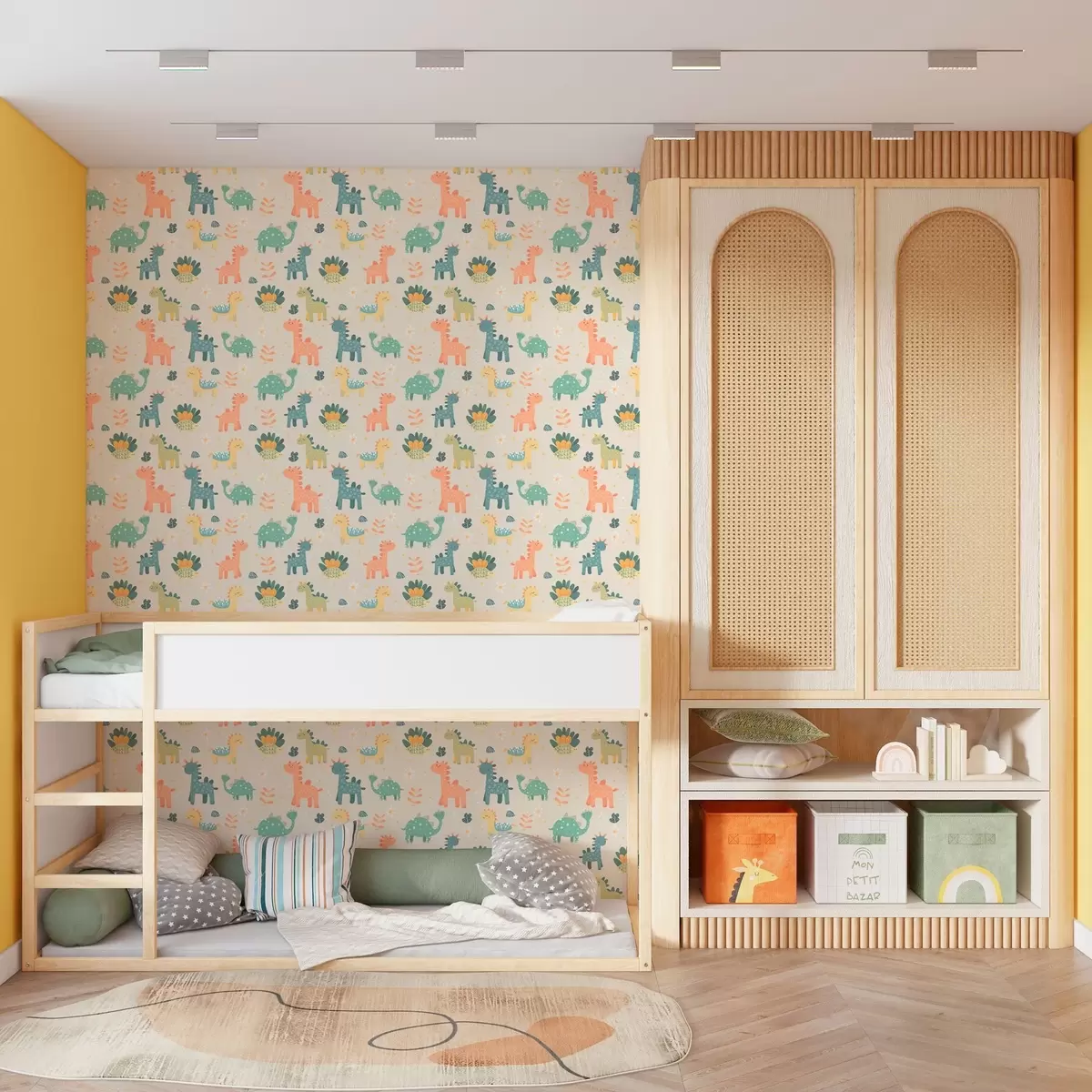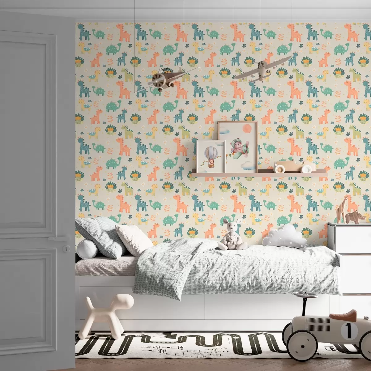 Tapetai Pastelinių spalvų vaikiški dinozaurai šviesiame fone Nr. a00125