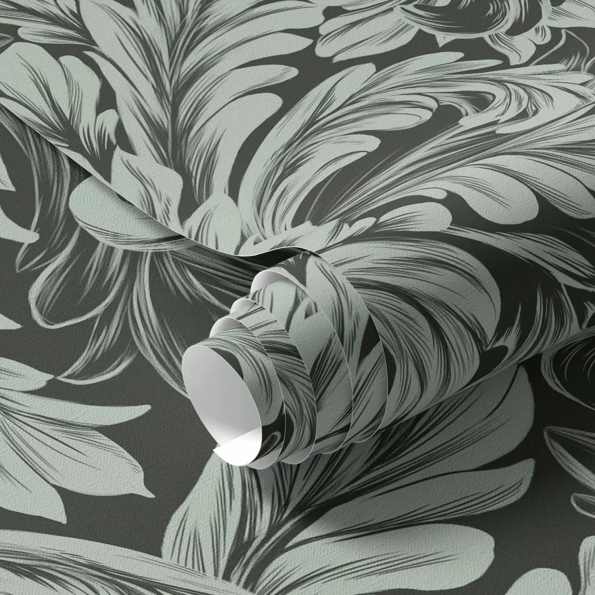 Tapetai Tamsiai žalias fonas su mėtų garbanomis Nr. a00135v4