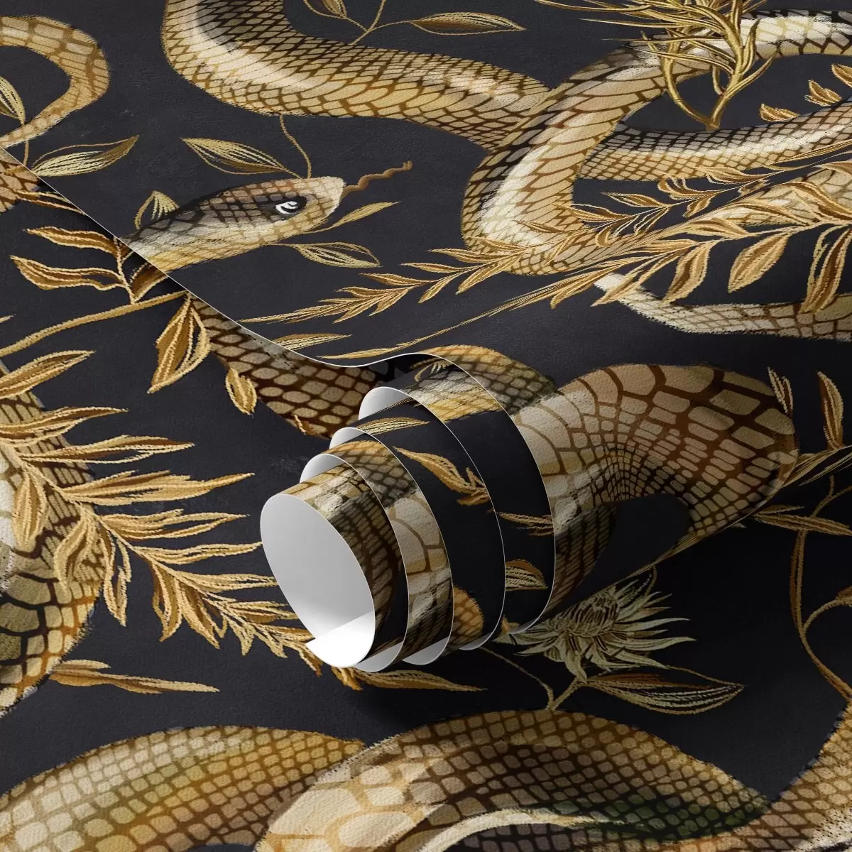 Tapetai Gyvatės ir gėlės tamsiame fone Nr. a00158