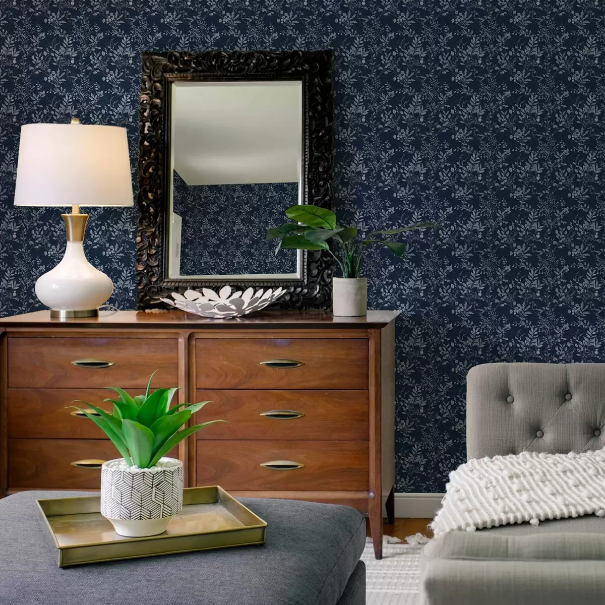Tapetai Šviesus botaninis raštas tamsiame fone Nr. a00166