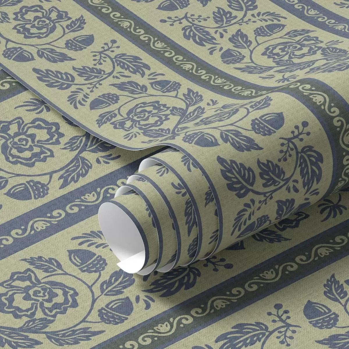 Tapetai Senovinis mėlynas ornamentas su gėlėmis ir gilės Nr. a00181v1