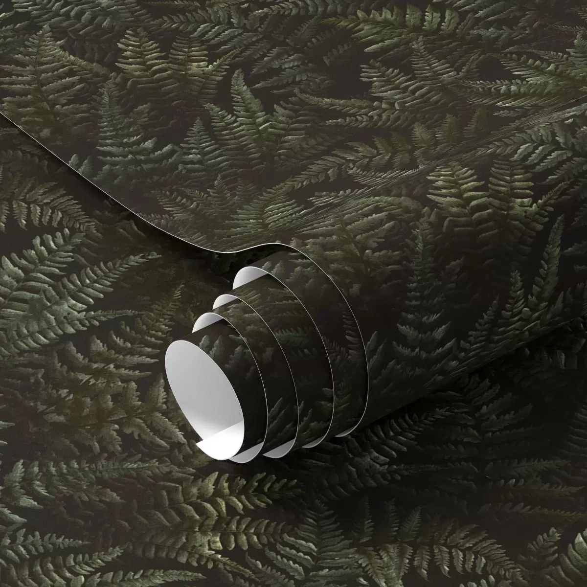 Tapetai Tamsus papartis, miško ornamentas, nakties spalvos Nr. a00214