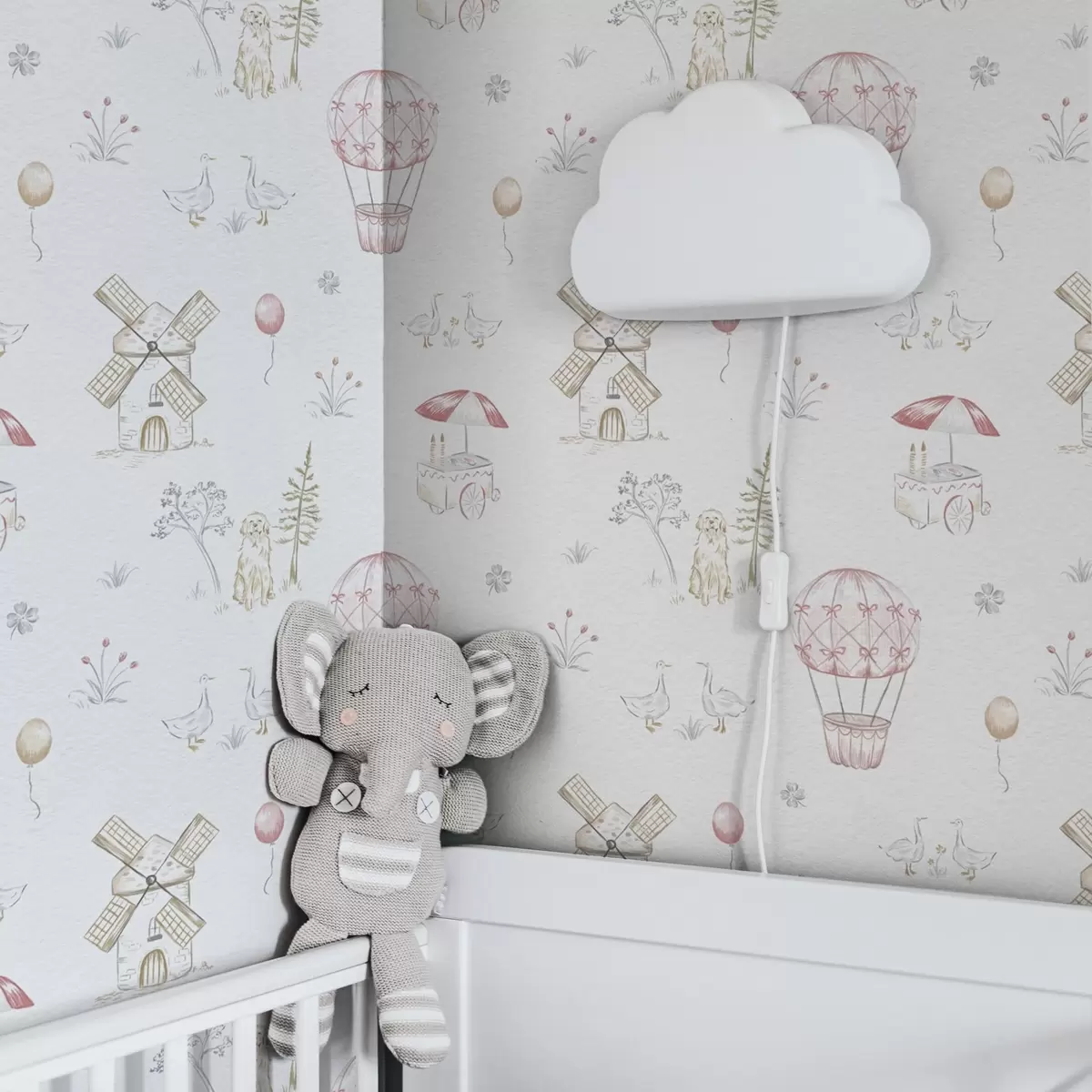 Tapetai Vaikų iliustracijos: Šuo, antys, kamuoliukai, malūnas Nr. a00278