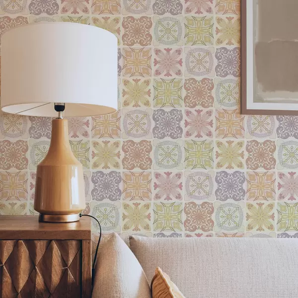 Tapetai Spalvoti geometrinių plytelių ornamentai Nr. a00284