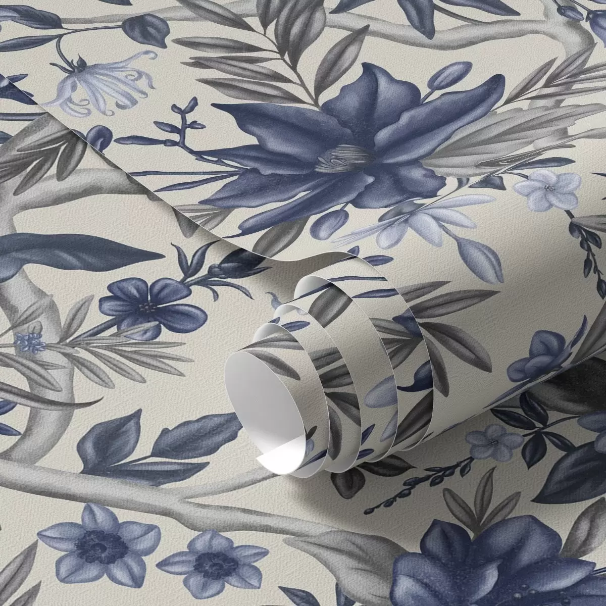 Tapetai Mėlynos ir pilkos gėlės šviesiame fone Nr. a00304