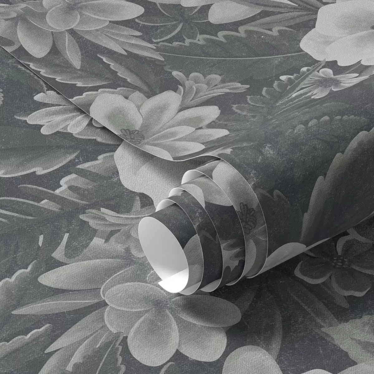 Tapetai Pilkos ir baltos spalvos gėlių raštas su retro efektu Nr. a00307