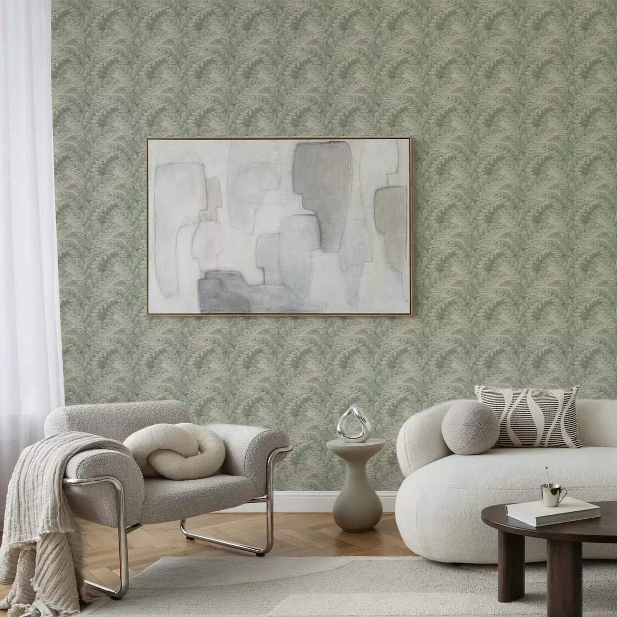 Tapetai Žalias raštas su paparčio lapais Nr. a00345