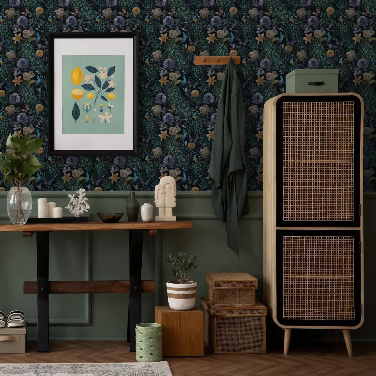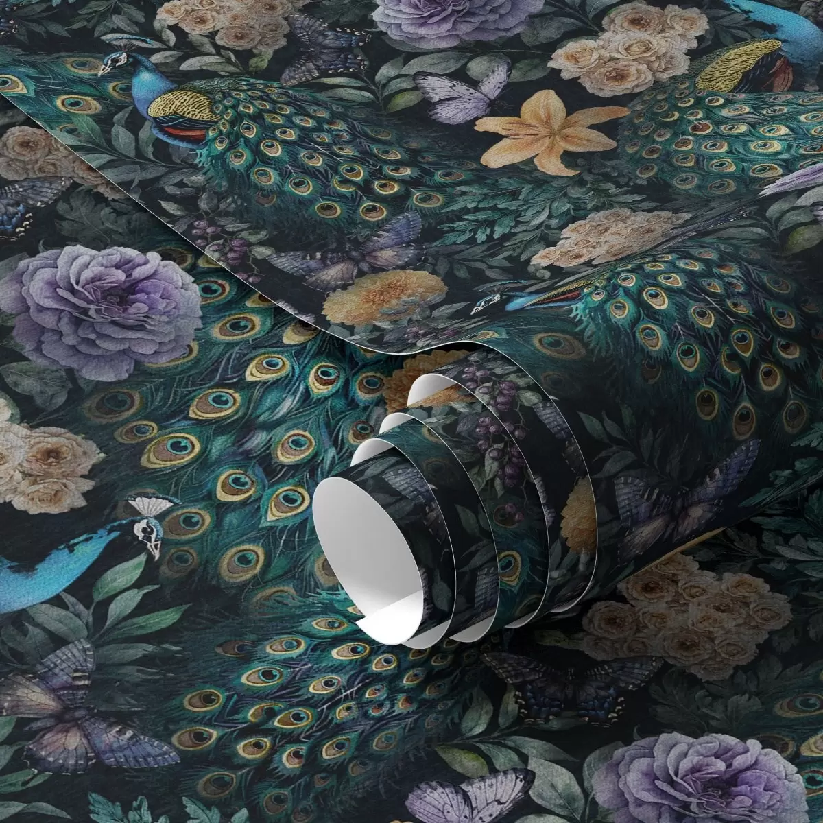 Tapetai Povai tarp tamsių gėlių ir drugelių Nr. a00348