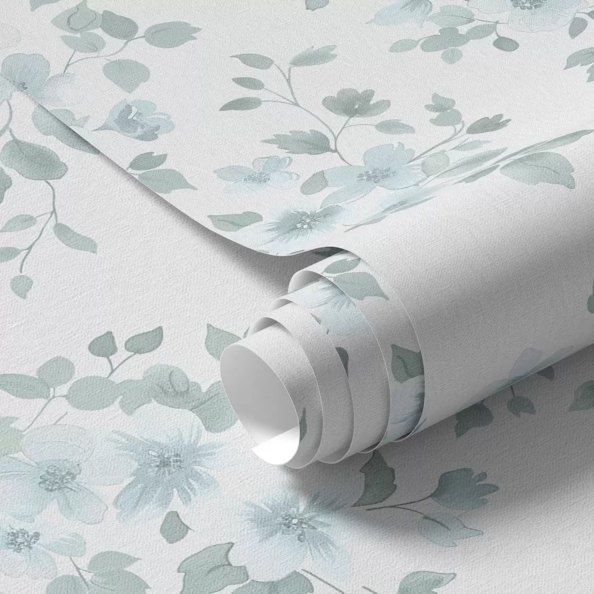 Tapetai Blyškiai mėlynos gėlės baltame fone, akvarelės stilius Nr. a00364