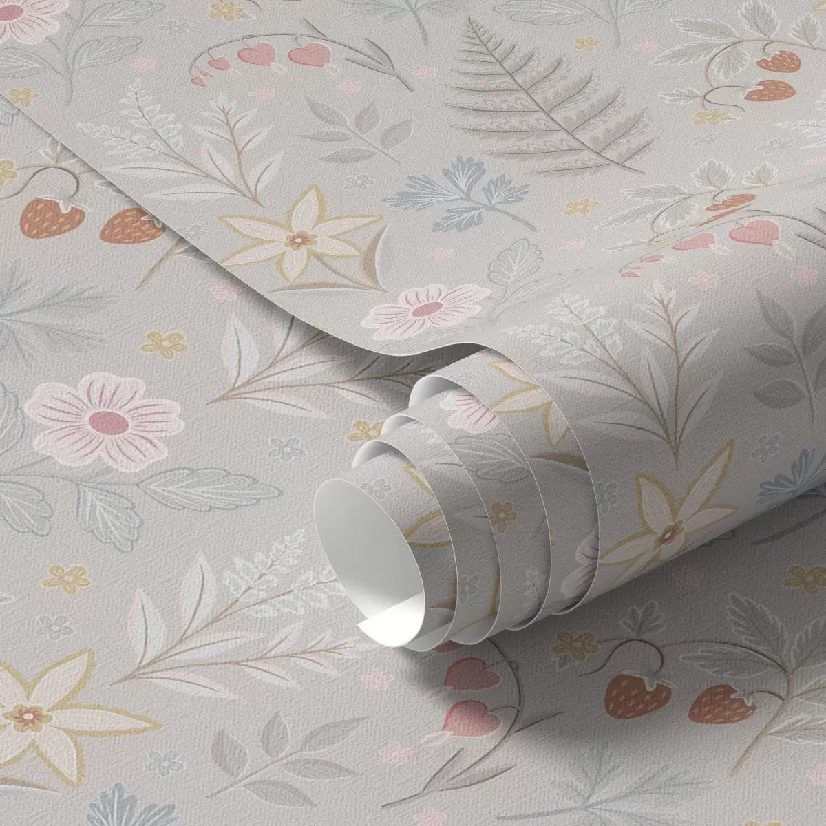 Tapetai Pastelinės gėlės ir uogos šviesiai pilkame fone Nr. a00406
