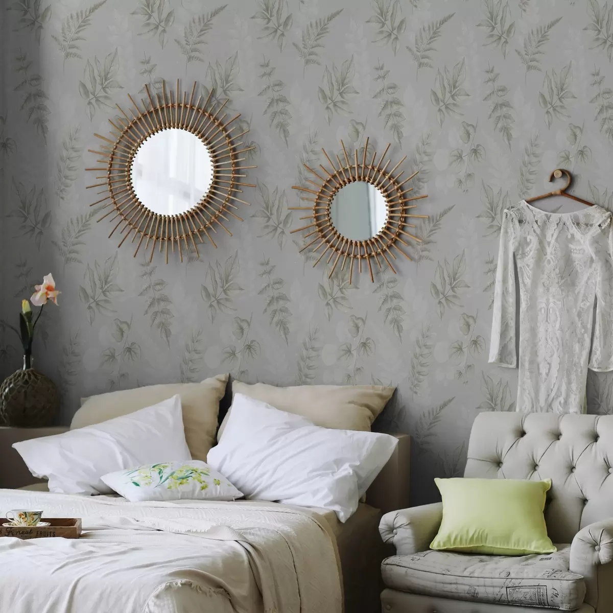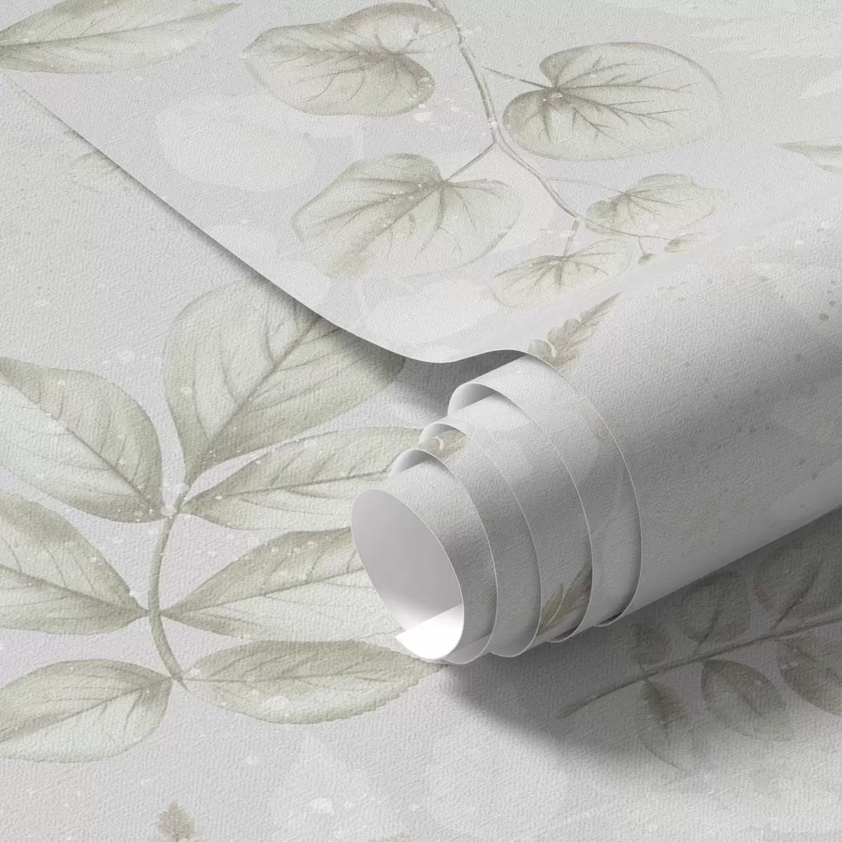 Tapetai Šviesūs akvarelės lapai su purslų efektu pilkame fone Nr. a00446