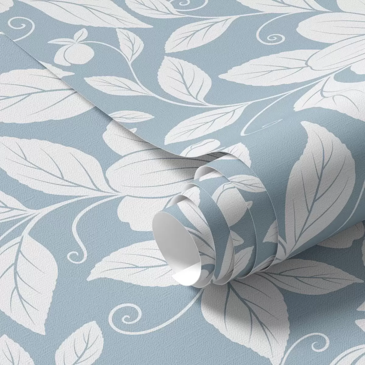Tapetai Baltas gėlių kontūras pastelinės mėlynos spalvos fone Nr. a00452